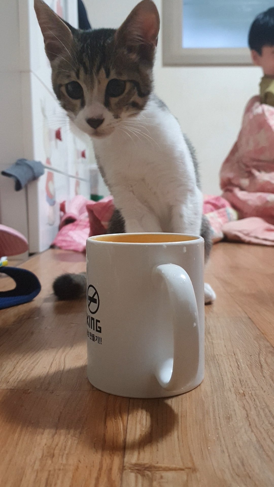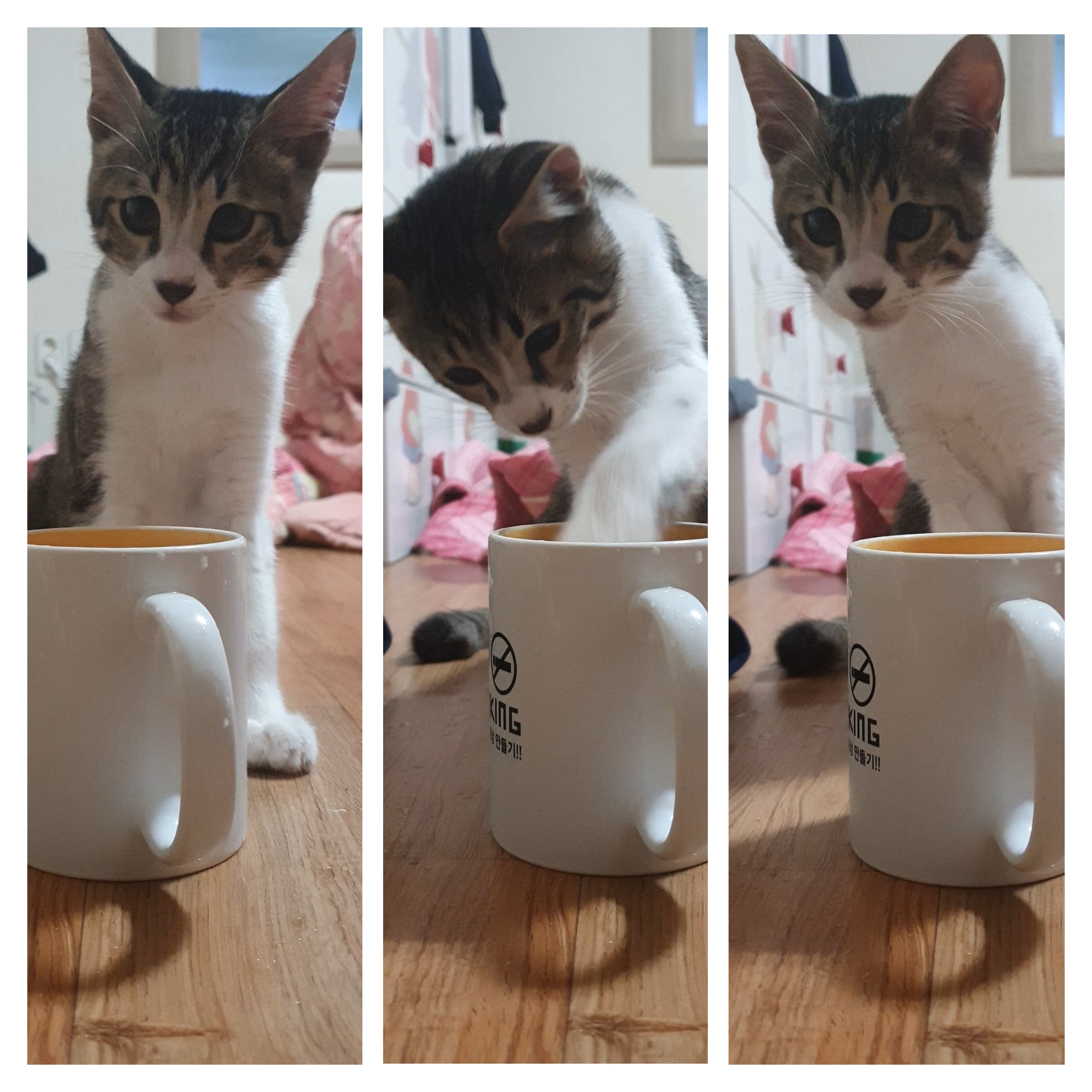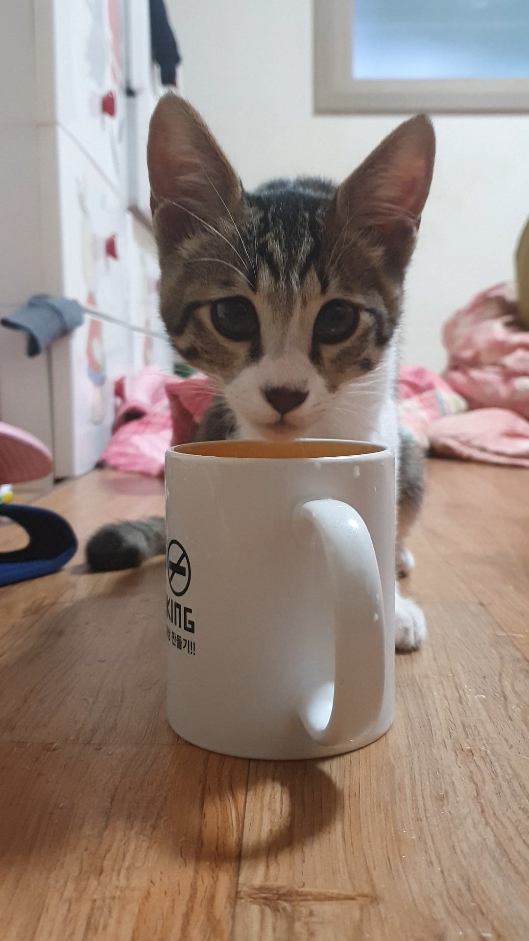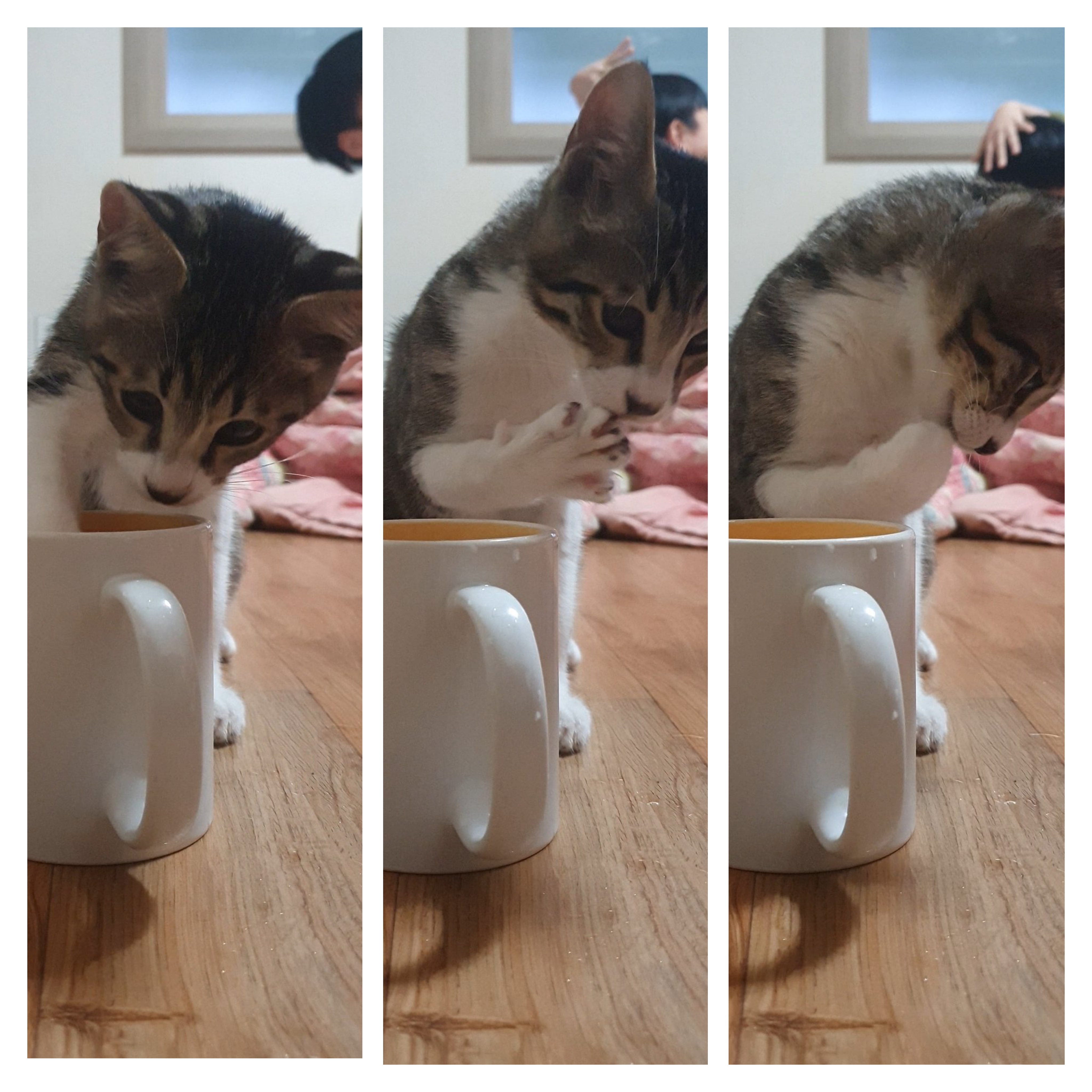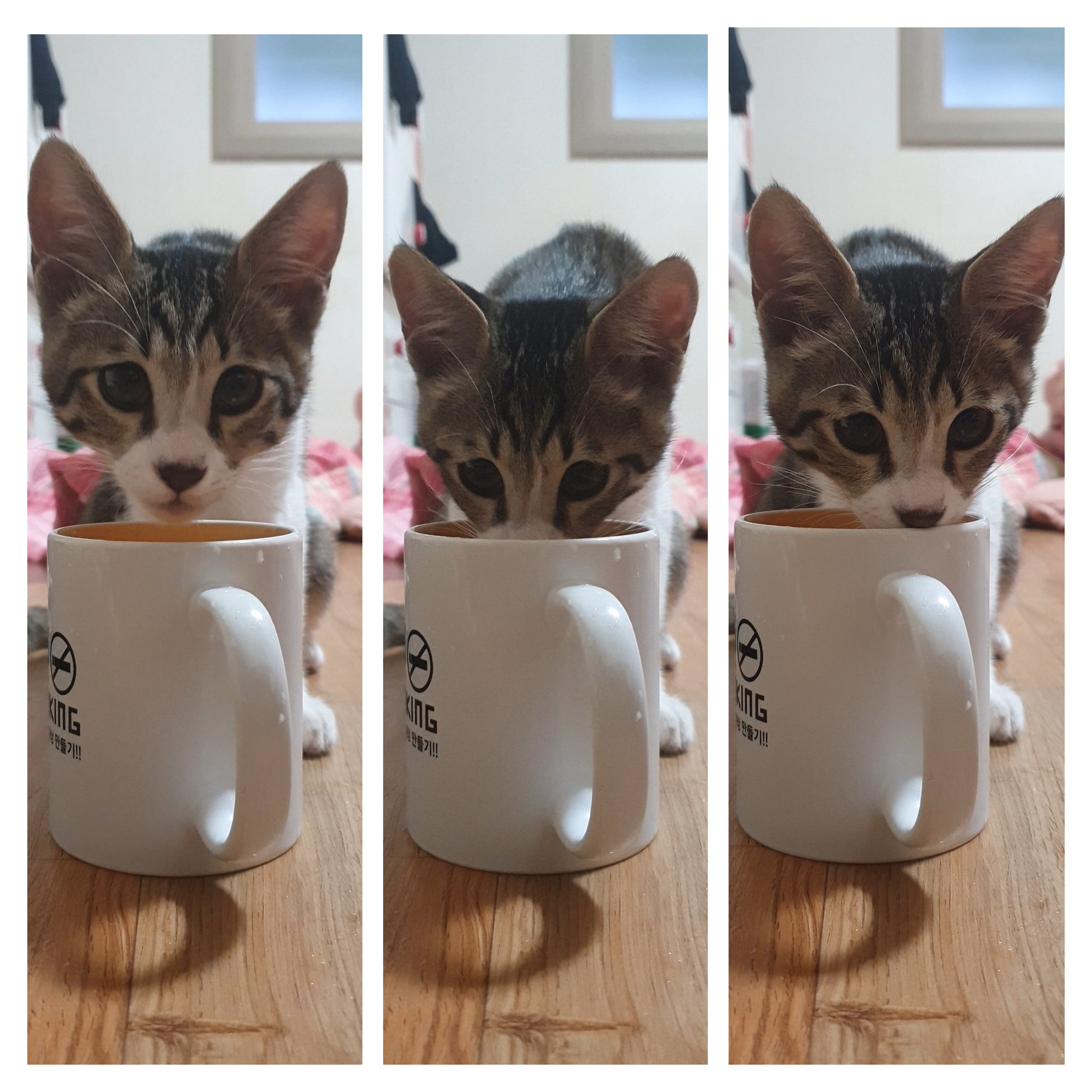 아기고양이, 컵을 대하는 자세-물을 꼭 그렇게 먹어야 하니?
