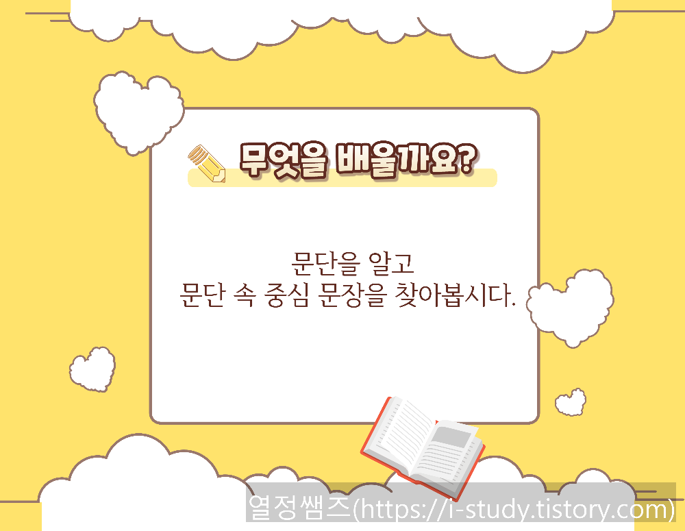 문단을 알고, 문단 속 중심 문장을 찾아봅시다.