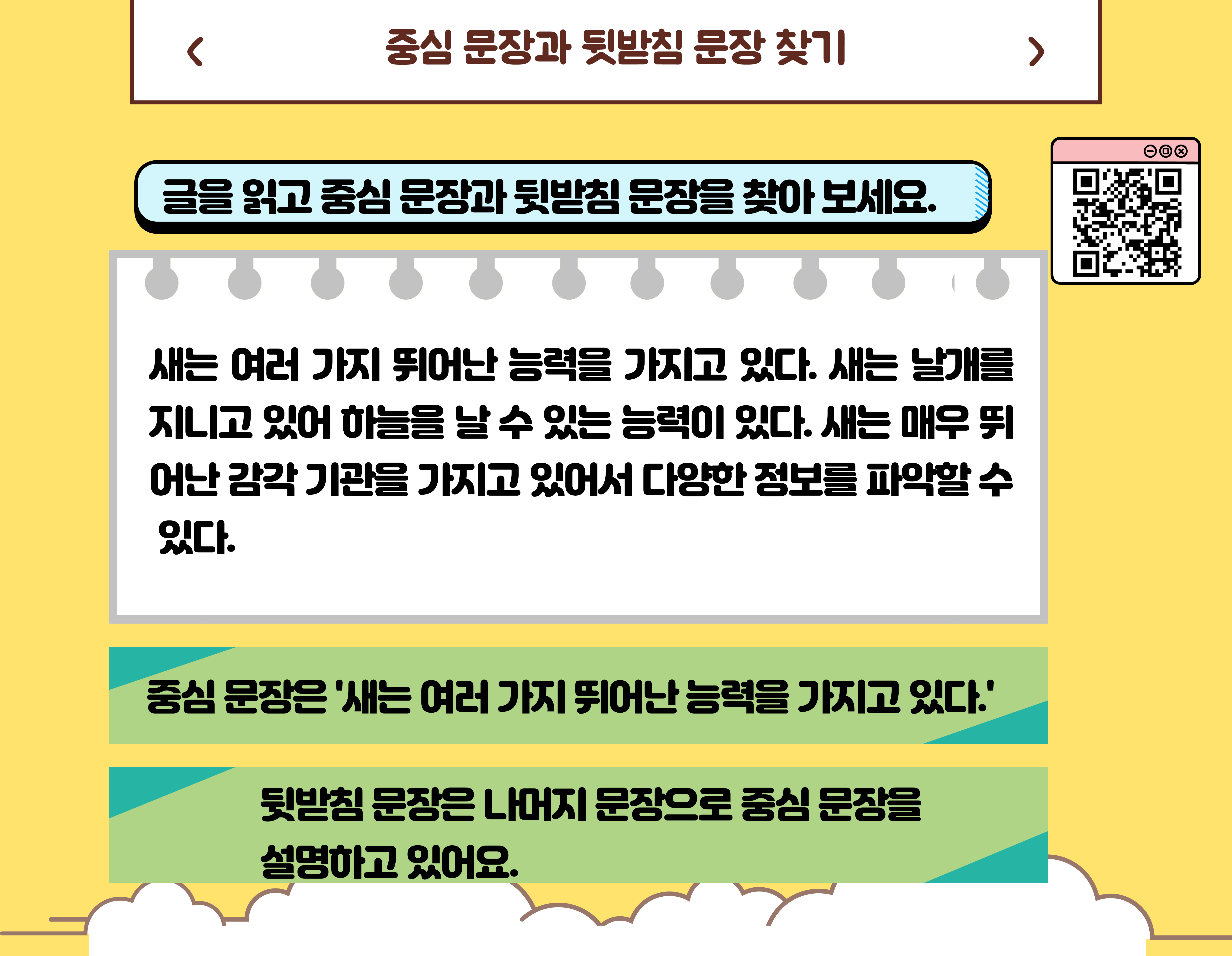 중심 문장과 뒷받침 문장을 찾아보세요.