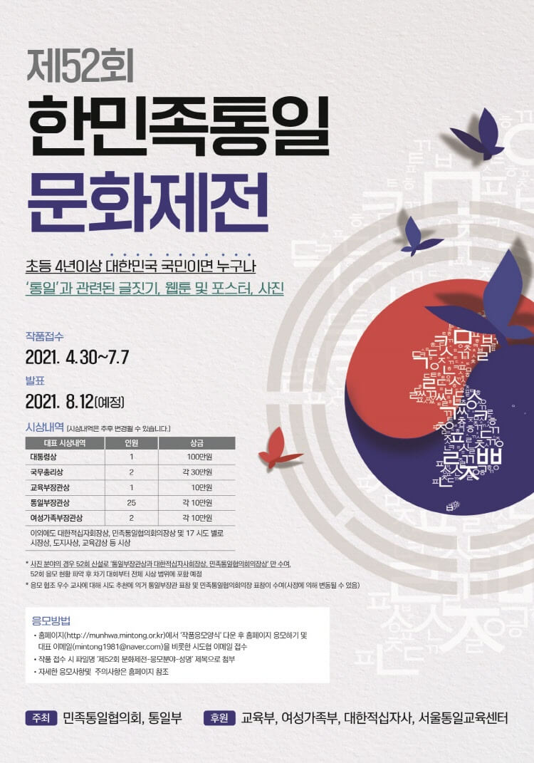 - 대주제: 한반도 평화 및 통일 염원 또는 비전을 담은 글과 그림, 사진