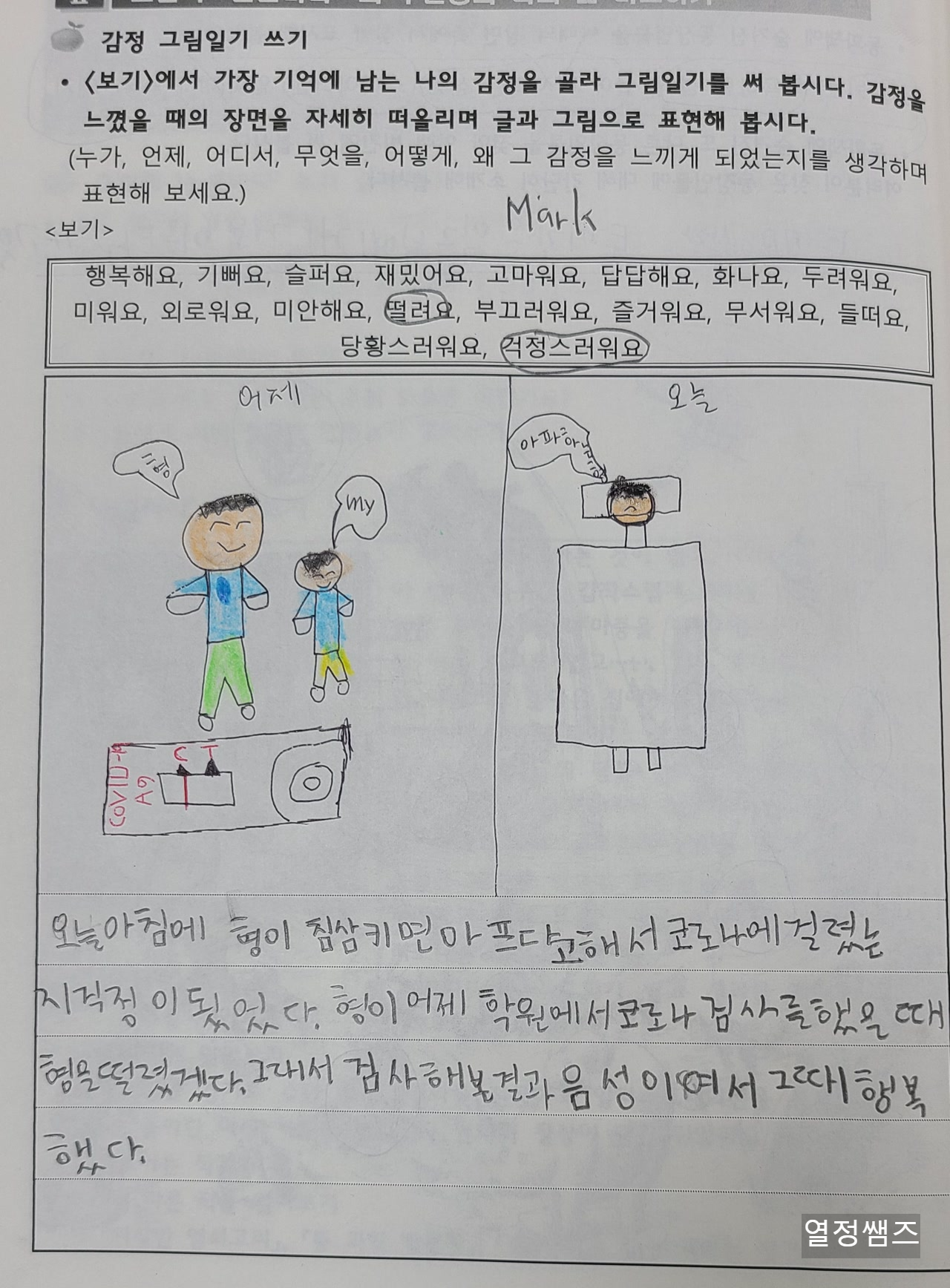 올해 코로나19가 유행을 하면서 아이들 일기에 한 번씩은 꼭 나오는 소재가 되었습니다.