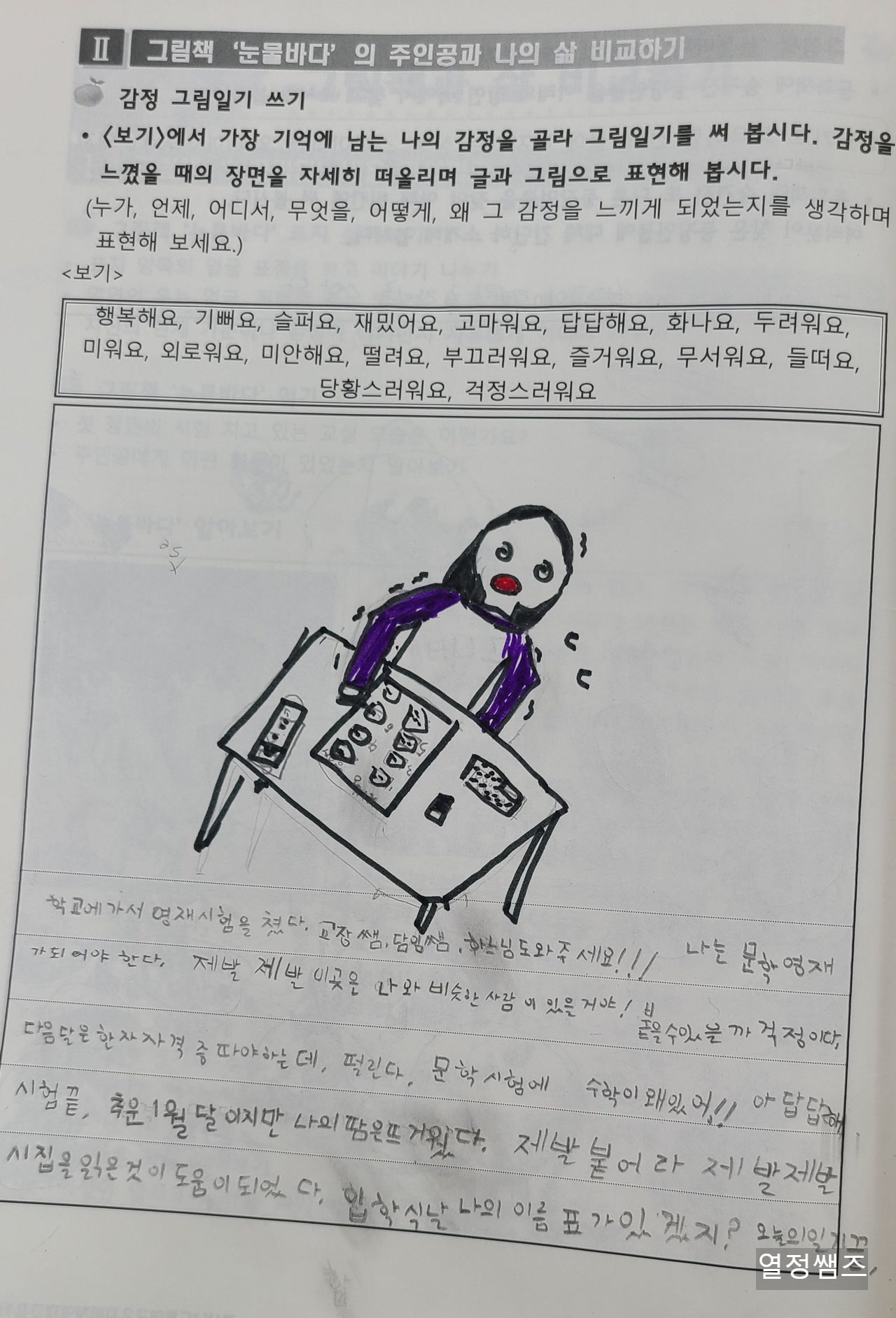 2022년 5월 문학영재수업, 서현 그림책 눈물바다를 읽고 감정 그림일기 쓰기를 했습니다.