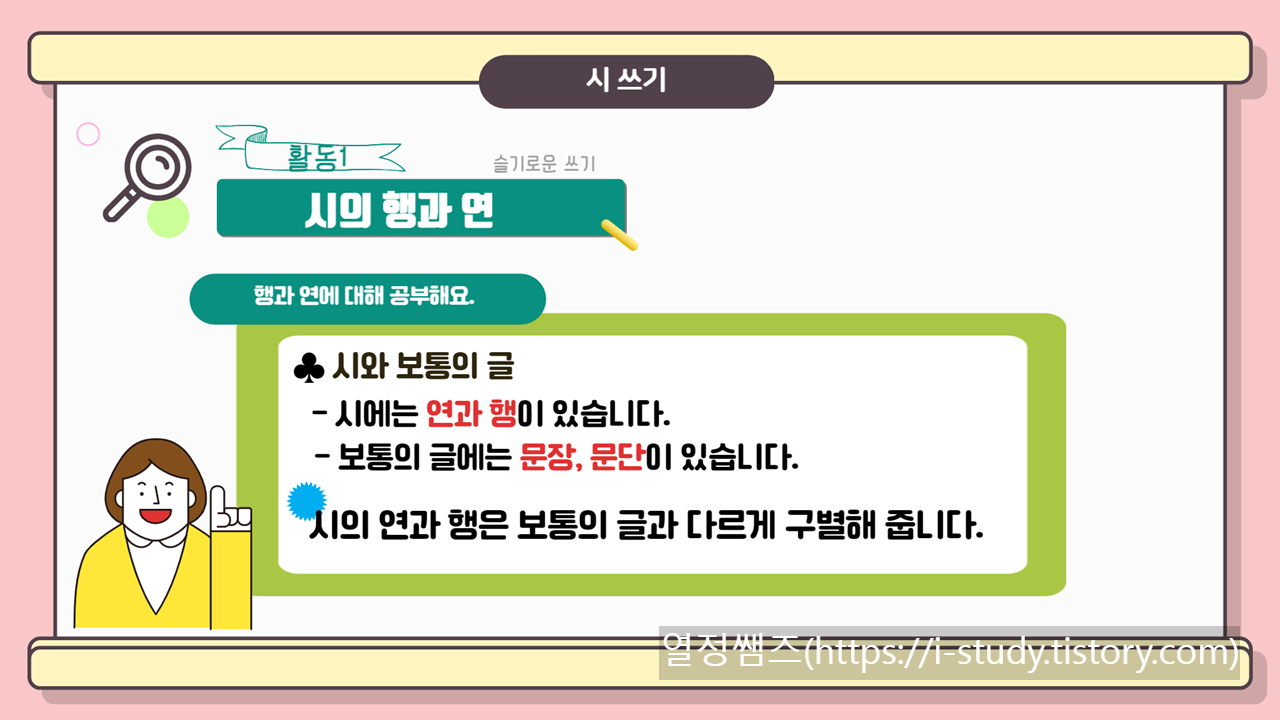 초등교사가 알려주는 시의 행과 연, 시의 운율, 시쓰기 지도방법, 시 쓰는 방법입니다.