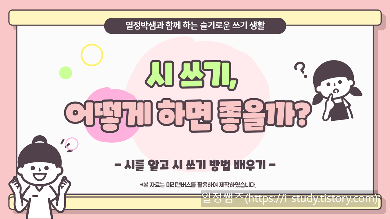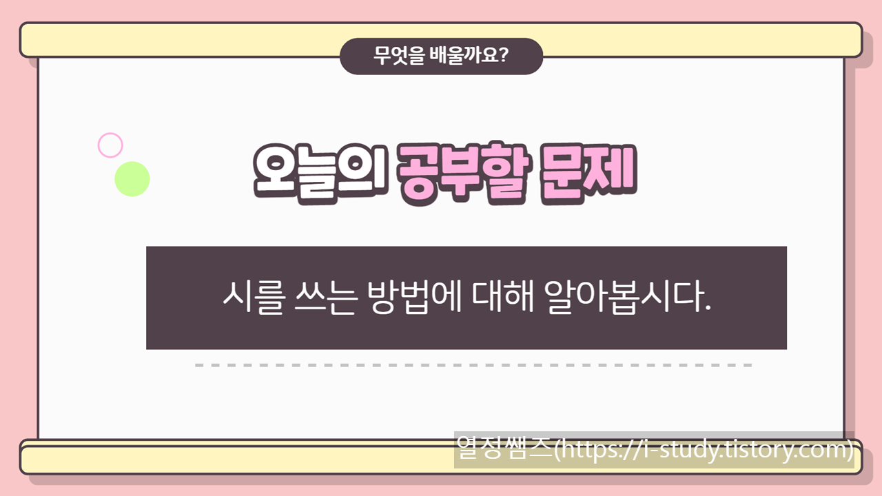 이번 시간에는 시를 알고 시쓰기 방법을 배워보도록 하겠습니다.