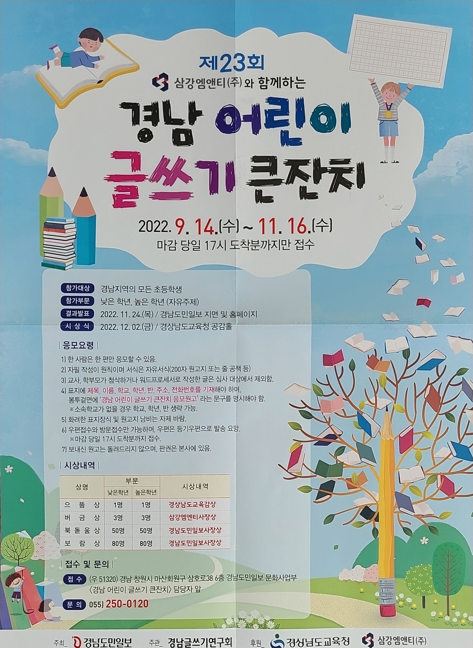 - 제23회 삼강엠앤티(주)와 함께하는 경남어린이글쓰기큰잔치 대회