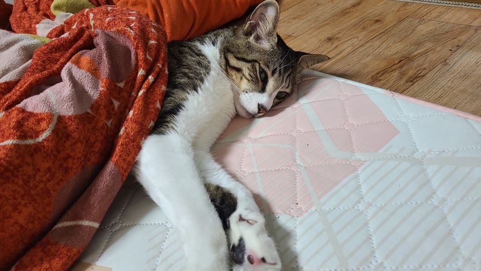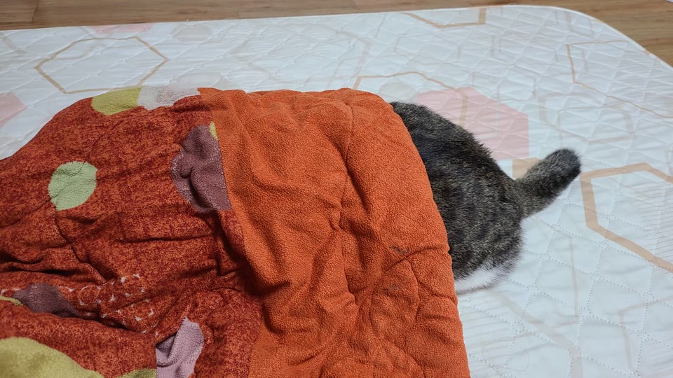 이불 안으로 파고 듭니다. 따뜻한 곳을 찾아다니는 행복이랍니다.