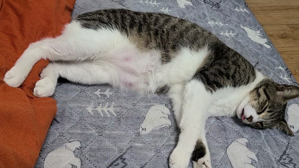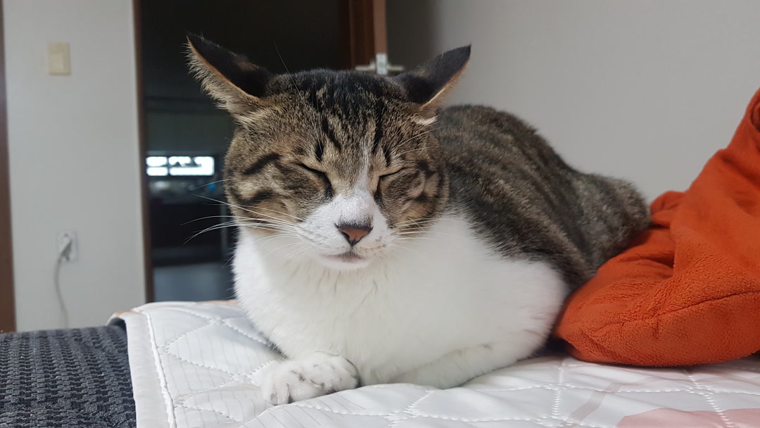 반려묘 세 살 고양이 행복이가 잠자는 모습을 찍었습니다.