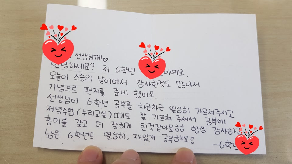 그래, 공부도 열심히 가르쳐주고 즐겁게 신나게 교실에서 보내봅시다.