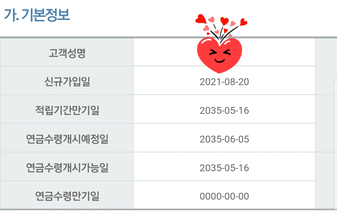 - 연금수령개시예정일: 2035.6.5