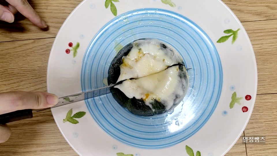 - 생단호박을 자르는 것보다 익힌 단호박을 자르는 것이 편합니다.