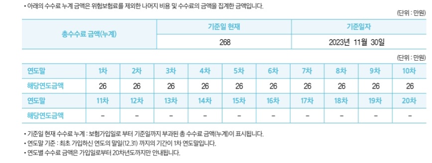 삼성화재연금보험 아름다운생활 연금저축 누적수수료도 볼 수 있습니다. 누적수수료가 268만원입니다. 너무 많아서 놀랐습니다.