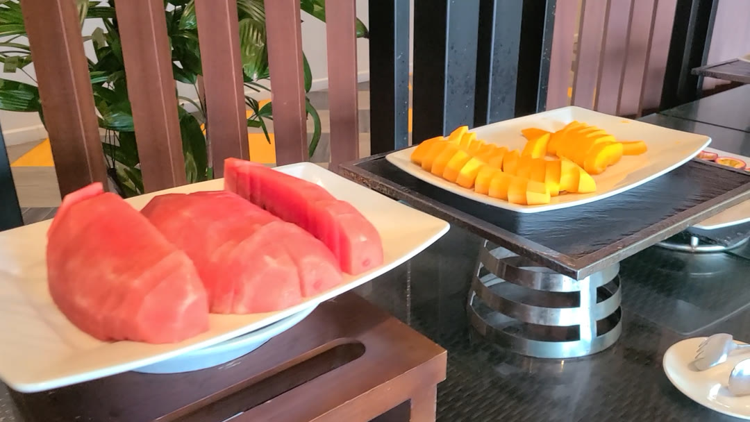조식을 먹으러 1층으로 내려왔습니다. 과일이 많습니다. 그나마 베트남 현지 음식 중에서 먹을 수 있는 것이 바로 조식입니다.