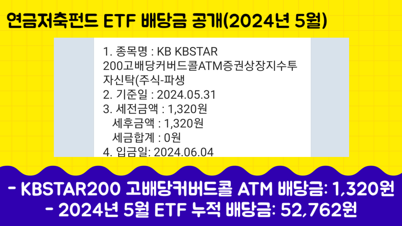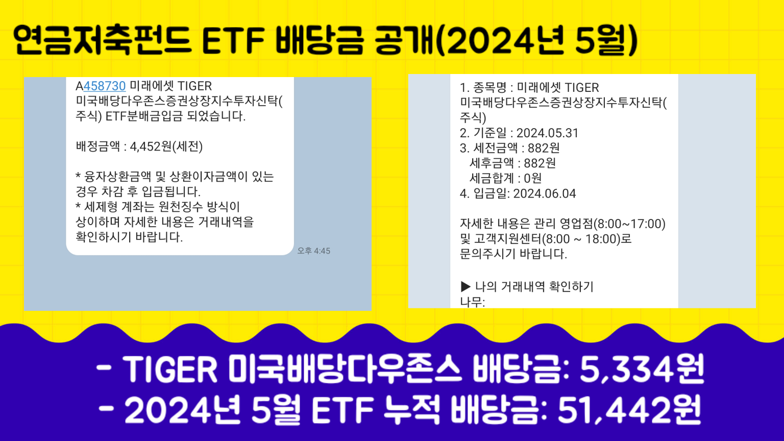 연금저축펀드 ETF 배당금 공개(2024. 5월)합니다. 월배당 etf로 매달 월배당을 받으려고 합니다.