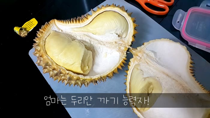 두리안을 손질하며 제2의 재능을 발견했어요. 두리안을 이렇게 잘 까다니.
