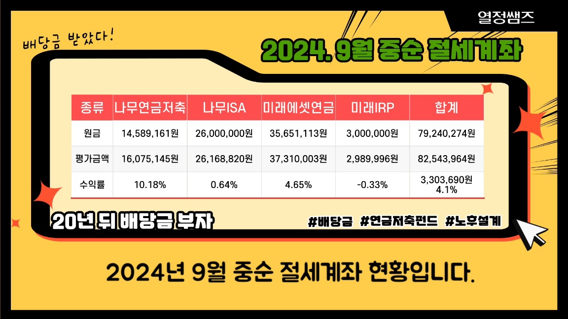 2024년 9월 중순 절세계좌 현황입니다.