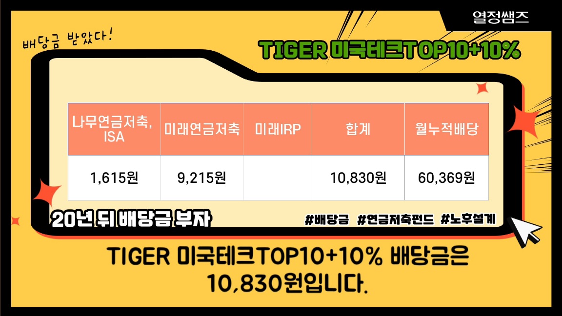 TIGER 미국테크TOP10+10% ETF 배당금으로 9월 중순 받은 금액은 10,830원입니다.