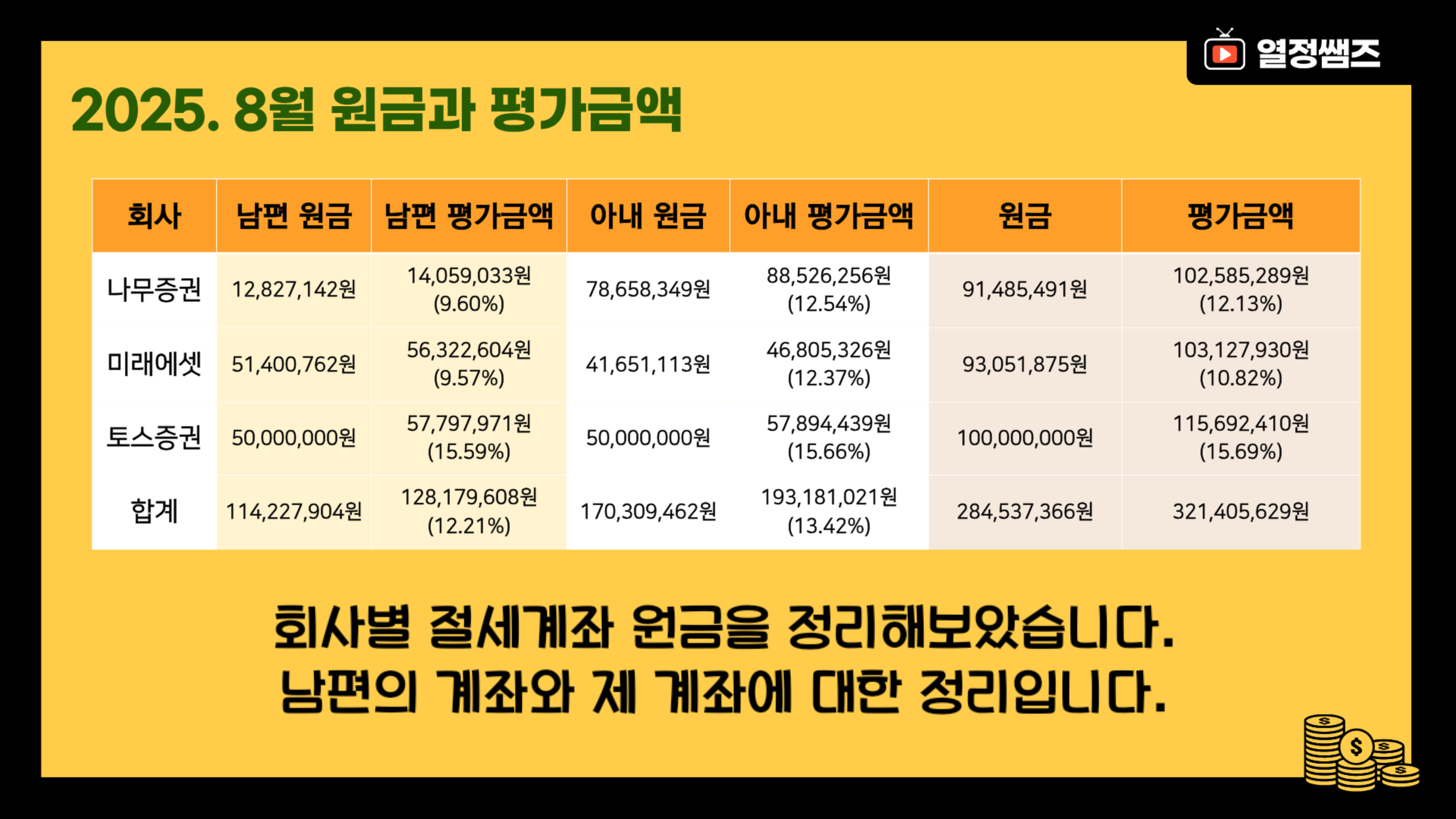 두 명의 절세계좌에 2억8천400만원이 들어가 있으며 평가금액이 3억 2천만원이라는 것을 알게 되었습니다.