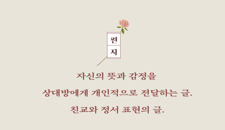 자신의 뜻과 감정을 상대방에게 개인적으로 전달하는 글로 친교와 정서표현의 글입니다.
