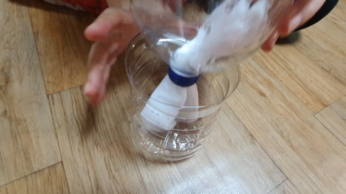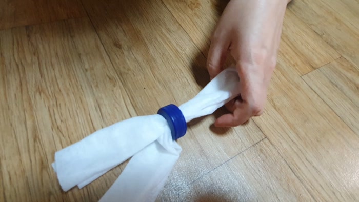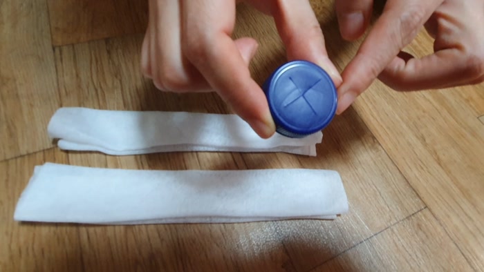 5. 병뚜껑 사이에 물티슈를 끼워줍니다.