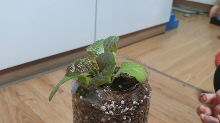 집 안에서 파릇파릇한 상추를 보니 너무 예쁩니다. 아이들도 상추 모종을 심은 것을 보고 즐거워합니다.