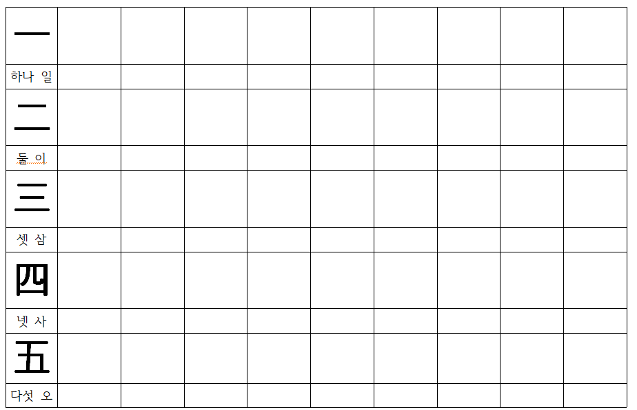 한자 따라쓰기가 끝난 후 한자를 보여주고 음과 뜻을 적으라고 하였다.