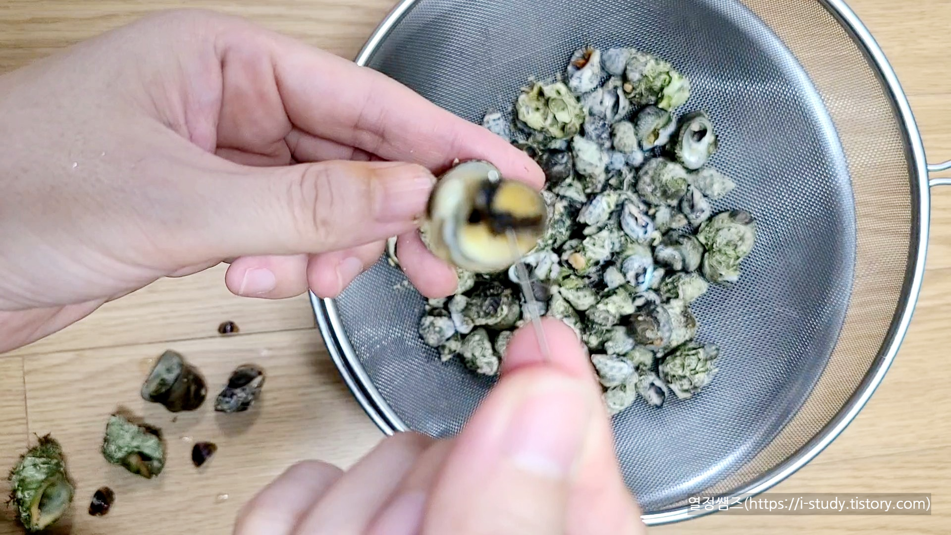 6. 바다 고동을 바늘, 옷핀, 이쑤시개를 사용하여 고동을 꺼내 먹으면 됩니다.