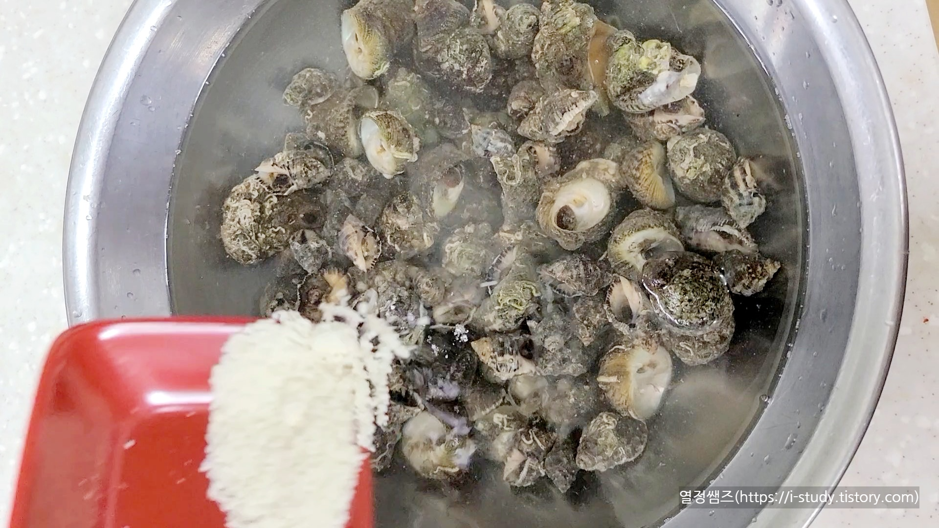 1. 바다고동을 1-2시간 정도 해감을 시킵니다.